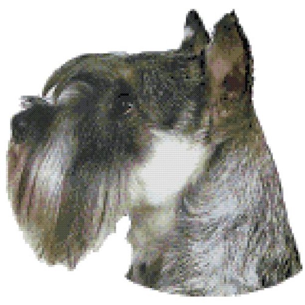 This counted cross stitch pattern of a schnauzer was created from a photograph copyright of www.photostogo.com.